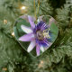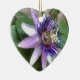 An exotic passion fruit flower grows on a vine for a short time. This beautiful purple passion flower has an unusual design that almost looks like its from another planet with its light purplish white petals in a star shape and deep purple ray of inner petal contrasting the yellow stamen that looks like antennae on a satellite dish.