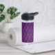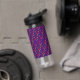 Purple pattern wildflowers red poppy water bottle. Personalised Drinkware with name.