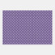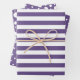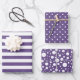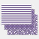 Three patterns in dusty purple and white: basic stripes, polka dots and random spots.