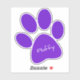 Purple Paw Print Design Custom Cut Contour Sticker with customisable text in various sizes