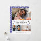 Custom purple photo happy Halloween card featuring three photos with a hand-lettered title on the front and a purple background with paw prints at the back. Easily personalise this purple pet photo Halloween card with your images, a family name and the year. This cute Halloween card can be turned into any colour using the customisation tool.