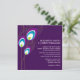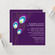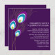Elegant and classic invitation features a beautiful vector illustration of peacock feathers on a deep purple background. Perfect for weddings, bridal showers, birthday parties, sweet sixteen parties and more!