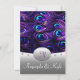 Purple peacock wedding invitations are schemed in various purple shades, silver, aqua, blues and a hint of gold. The front of each invitation features printed vibrant feathers at the top, with printed silver and diamond accents at the bottom. The front features four tiny diamonds that border the monogram. You can change the monogram letter, font, sizing and colouring by clicking the orange customise button below the invite demo or by using the personalise feature to the right of it. The back is silver with printed silver swirl jewels and a solitaire diamond that's centred near the top. The text on the back and wording can also be changed to what ever you desire by using the personalise or orange customise button below the demo. You can use your mouse to zoom in to see the excellent detail to the printed feathers and diamonds. Just hoover your mouse over the card demo at the top. If you love this design, scroll below to find matching other invitation sizes, RSVP cards, save the dates, envelopes, envelope seals and more.