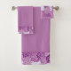 Decorate your bathroom with this towel set in a medium purple colour with a border of peonies in purple hues. See my store for coordinating bathroom accessories.