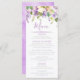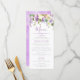A purple floral garden wall adorns a modern 3-course menu, with choice of entree and dessert. An elegant menu adorned with matching florals on the back, perfect to set down on the tables before guests flip them around to reveal the nights' courses. Also available on a traditional 4"x 9" elegant card.