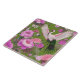 Stylish ceramic tile with an Art Nouveau-inspired chinoiserie pattern with purple peonies and white crane birds on an olive green background. Perfect to add an accent to your bathroom or fireplace or as a retro asian-inspired trivet.