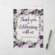 Thank your guests in style with this elegant “Thank You for Celebrating with Us” sign, designed to add a beautiful finishing touch to your event. Featuring a soft watercolor floral border in shades of lavender, plum, and fresh greenery, this design creates a romantic garden-inspired feel that complements weddings, bridal showers, milestone birthdays, and special celebrations. The graceful script lettering paired with classic serif accents ensures the message is both warm and easy to read. The added “Please Take One” line makes it perfect for guest favor tables, encouraging guests to enjoy a thoughtful takeaway. Printed on a smooth 12.5 pt paper sheet, this sign is lightweight yet polished—ideal for framing or displaying on a tabletop or easel. A lovely coordinating piece for floral-themed event décor.