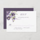 Watercolor floral bouquet in dark rich purple and green RSVP cards. The back of the card is purple. Your guest's details are featured with a mix of calligraphy and modern text. If you need help or would like this design on a matching product, please contact me through my store.