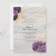 Design features a printed coloured floral element in shades of purple, lavender, ultra violet and plum with peony blooms and wood barn bark line and string of lights. Calligraphy script or type writing. Mix and match collection piece. Great for your wedding celebrations!