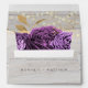 Design features a printed coloured floral element in shades of purple, lavender, ultra violet and plum with peony blooms and wood barn bark line and string of lights. Calligraphy script or type writing. Mix and match collection piece. Great for your wedding celebrations!