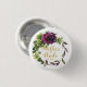Create buttons for the mother of the bride with this beautiful watercolor floral wreath design in shades of plum purple and green with one lush open peony. Use the provided template to add wedding date in gold. Search ID456 to see other products with this design.