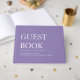 Simple and modern guest book for a wedding or any party or event in a purple and white colour block with a serif font and a minimalist style. Personalise this keepsake with any text, names, date, etc.