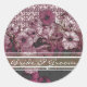 Bride and Groom Purple Petunia On Elegant White Gradient StickersWith Brown Laced Linen