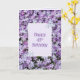 Purple phlox blossoms in a summer garden with a lavender frame and Happy 45th Birthday text.