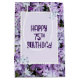 Purple phlox blossoms in a summer garden with a lavender frame and Happy 75th Birthday text.