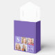 Cute 4 photo personalised happy birthday party purple folded favour boxes for a little girl. Celebrate your child's birthday with beautiful photographs of them on this add your own photographs with violet squares. Add their name and age.