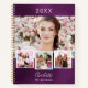 Create your own unique photo collage. Use four, 4 of your favourite photo. Personalise and a year, name and text. A deep purple, uneven coloured background, white text.