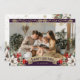 Purple Photo Holly Snowflakes Season's Greetings Holiday Card