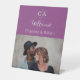 A modern plum, purple coloured background. Personalise and add your photo, monogram initials, names. White text.