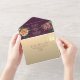 Elegant, modern, moody romantic, floral purple all-in-one wedding invitation with gold floral lace, watercolor flowers and 3 pictures of the couple. Add your photos, wedding details and rsvp.