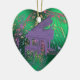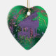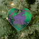 Purple Piano Music Notes Heart Green Christmas Ornament. Flowing staffs of musical notes and clefs on a metallic green background with a lavender purple grand piano. A great gift this holidays for your favourite piano player, musician or dance lover.