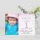 Purple Pink 1st Birthday Party Photo Birthday Invitation