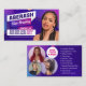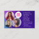 Elevate your style at our Purple Pink African Hair Braiding Salon with our captivating Photo Business Card. Tailored for braiders and hairstylists, this modern card features a chic purple and pink design for a trendy allure. Add a personal touch with your photo, creating a memorable connection with clients. Make a bold statement and leave a lasting impression in the world of African hair braiding with this stylish and customisable business card.