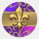 Purple Pink and Gold Filigree Swirls Fleur de Lis Classic Round Sticker