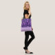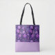 These pretty purple, pink, and yellow daisy-typle flowers are perfect for an all-over print tote bag. The bottom third (aprox.) is a coordinating solid with a thin stripe. Tote bags are a fun seasonal aesthetic accessory. AI assisted graphic purchased with commercial use. Artwork: CosmicMeta