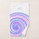 A simply elegant personalised beach towel with a swirl of blues and purple.