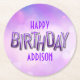 Purple Pink Bokeh Birthday Round Paper Coaster