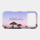 A purple blue and pink sunset on a Southern California beach with thatched palapas oozes relaxation and reflection. Travel back to your vacation beach days whenever you use this stunning, beautiful photography personalised name cell phone case. Makes a great gift for someone special!