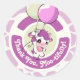 Express your gratitude with our adorable baby shower thank you sticker featuring a charming baby cow surrounded by colourful balloons and a delightful cow pattern background.