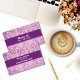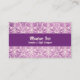 Vintage elegant purple magenta damask pattern business card personalised with soft pink typography, accentuated with a dark purple ribbon like background for contrast. Full and round font for a retro and a bit more fun and modern design, created for the stylish brand who loves the elegance of the damask patterns. Update your business information, tag line and contact information.