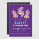 Colourful dancing unicorns welcome friends and family to your child's birthday party. The text says five. You can change the template to any birthday you wish. The unicorns are purple and pink with a dash of turquoise blue. Bright yellow tutus add a splash of colour. The child's name and birthday date are also turquoise blue. Bright white text on deep purple background is very easy to read.