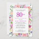 Purple Pink Floral 80th Birthday Invitation