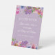 Purple Pink Floral Baby Girl Shower Guestbook Pedestal Sign