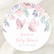 Purple Pink Floral Butterfly Girl Baby Shower Classic Round Sticker