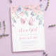 This sweet pastel butterfly baby shower invitation is so cute! Beautiful watercolor flowers in pastel pink and lavender purple. Two pretty butterflies decorate this unique design and add a feminine touch. The elegant calligraphy script font can be changed to any colour or style of your choice.
