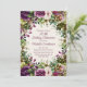 Purple Pink Floral Green Leaves 80th Birthday Invitation