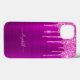 An elegant, girly and glam phone case. Pink coloured coloured faux glitter drips. Purple background. Personalise and add a name, written with a modern hand lettered style script with swashes. Light pink coloured letters. To keep the swashes only delete the sample name, leave the spaces or emoji's in front and after the name.