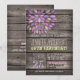 Birthday Party invitation featuring lavender purple, pink, green, flower blossom, floral design on rustic vintage country western, brown barn wood, wooden printed background with elegant, old fashioned style fonts. Perfect for country, farmhouse, farm, barnyard theme adult Birthday Parties! This cute, fun invite is great year round for spring, summer, fall, or winter birthday celebration! Rustic birthday invite for any adult or teen milestone birthday including Sweet 16, sixteen, 18th, 21st, 30th, 40th, 50th, 60th, 70th, 75th, 80th, 85th, 90th, 95, 100th birthday.