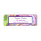 Personalised return address labels. Pour painting style purple, pink, lime green white marble art design.