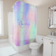 A trendy holographic coloured background with unicorn and rainbow pastel colours in pink, purple, rose gold, mint green. Personalise and add a name, and your monogram initials. The written with a girly modern hand lettered style script. Purple and pink coloured letters. Your monogram initials as a background pattern.