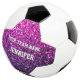 Personalise faux sparkly trendy girly sport equipment soccer ball. Customise your team name and your name. Beautiful girly glamourous purple pink ombre shiny glitters sparkles bling design. We use photo of pink sparkles, not actual glitter! Faux sparkles!