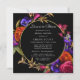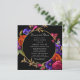 Elegant and bold modern floral contains purple, orange and pink flowers on a black background. This bold botanical surrounds a round gold frame. Your Love is in Bloom bridal shower details are in bright white. The back of the invitation features LOVE written in decorative letters and embellished with flowers. This bridal luncheon invitation is part of the Midnight Bridal Shower Collection. Feel free to message me if you need help finding matching items.