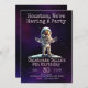 Purple and pink outer space themed party invitation. Great for a girl's party.