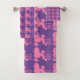 Decorate your bathroom with striking pink poodles on purple bath towels.
