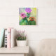 Purple Pink Red Cactus Flowers Migned Painting Art Square Wall Clock