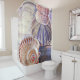 Purple pink seashells on wood watercolor shower curtain